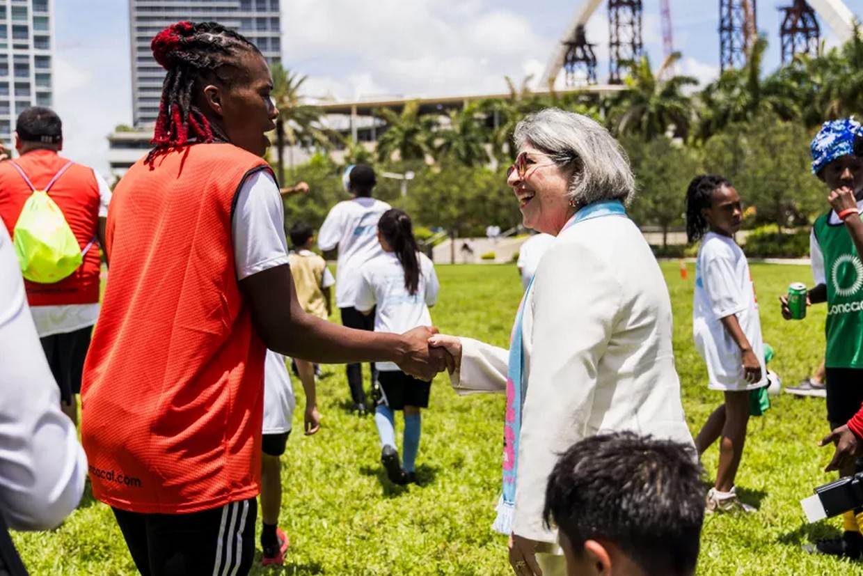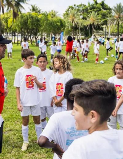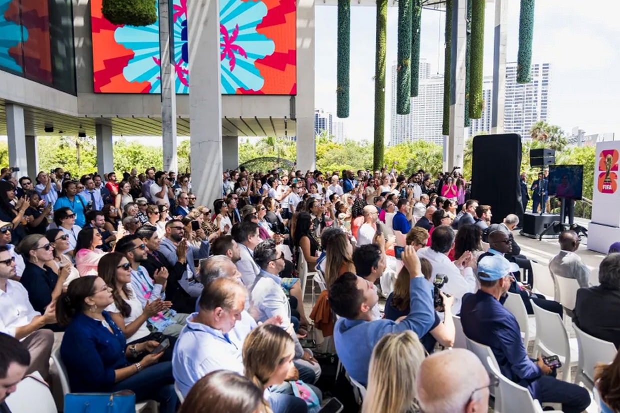 The event included a press conference with remarks from key figures including Miami-Dade County Mayor Daniela Levine Cava, City of Miami Mayor Francis Suarez, and other FIFA and Host Committee representatives. A “Kids Walk Over” segment took place around 12:15 p.m., embodying the event’s celebratory and inclusive spirit.