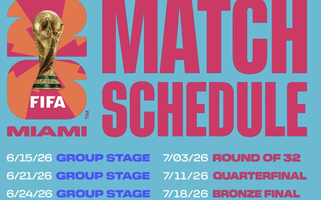 Today at 3 p.m., FIFA officially released the highly anticipated match schedule for the FIFA World Cup 26™, revealing that Miami will host seven matches ― beginning June 15 through July 18, 2026 ― including one quarterfinal and the bronze match. This announcement marks a historic moment for the community, placing Greater Miami and Miami Beach and the state of Florida at the center of the global soccer stage.